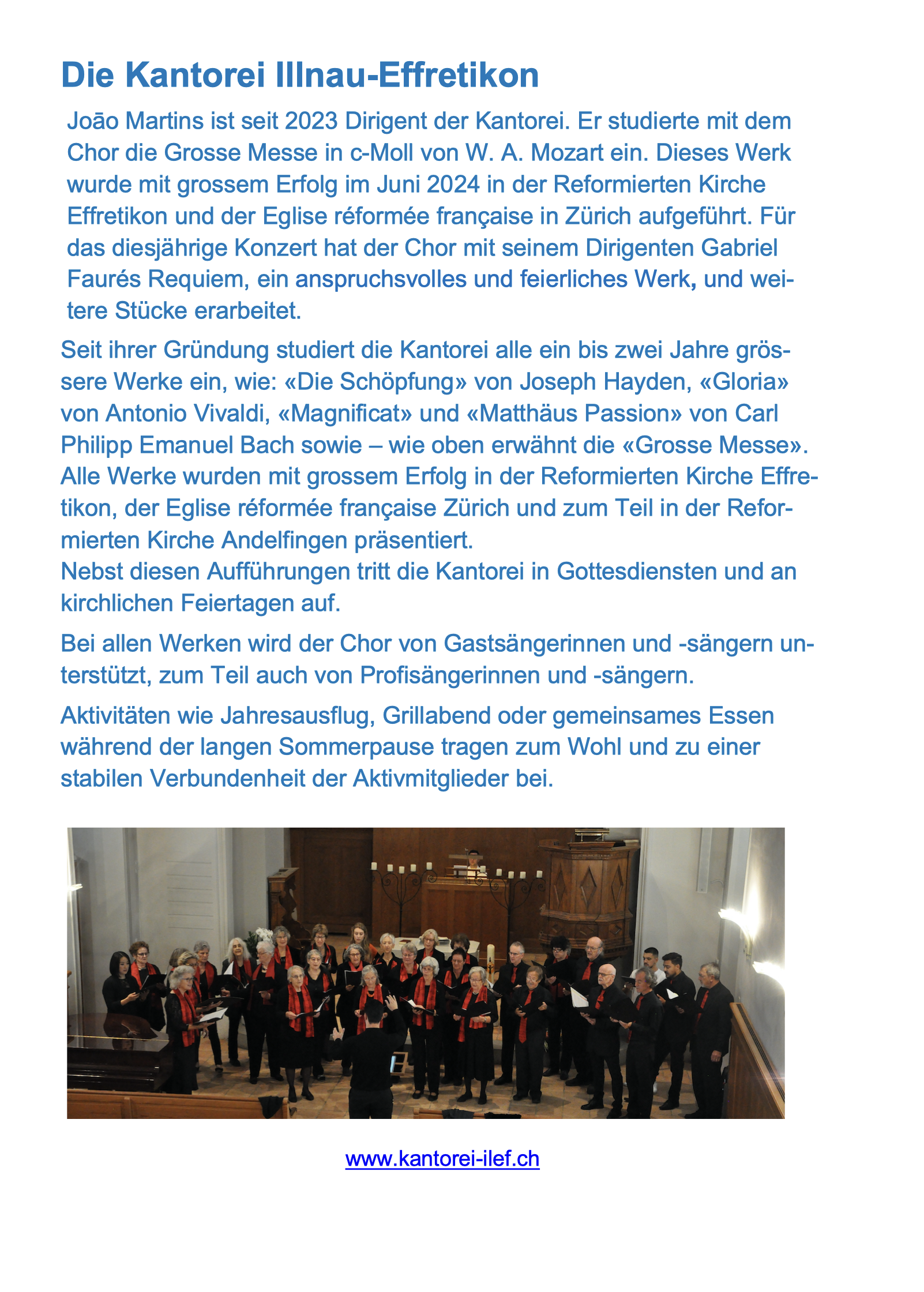 © Kantorei Illnau-Effretikon: 2015 - 2025     Login